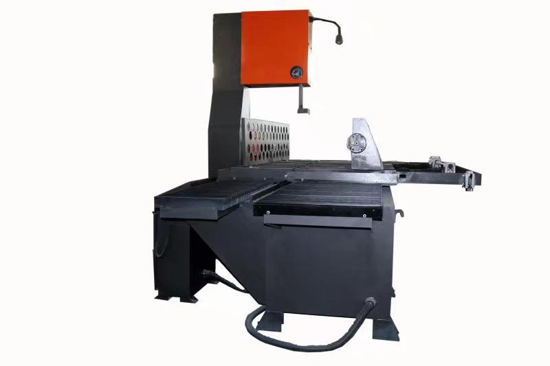 若遇到带锯床锯切效率下降,则考虑以下原因:1.锯条选择错误(如齿距过大或过小)。要根据材料厚度选择齿距(一般每齿接触2-3个齿距)。2.切削液不足或浓度不当。需要检查切削液流量和浓度,清理喷嘴堵塞。3.锯条速度或进给速度设置不合理。需要优化参数:软材料可提高速度,硬材料需降低进给。4.材料中有硬点,需要暂停带锯床切割,降低进给速度。