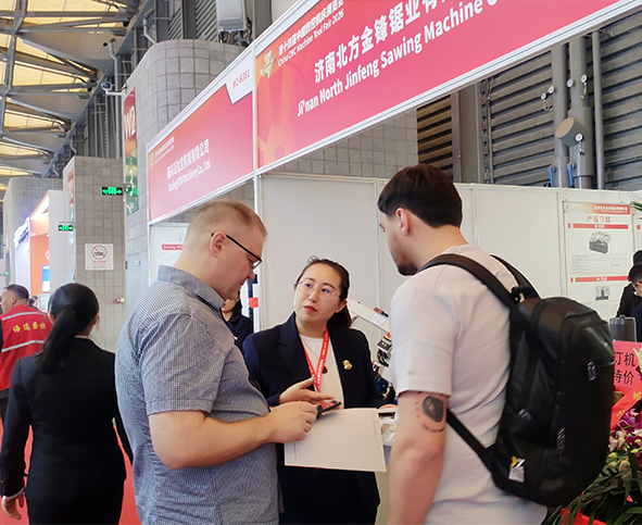 展会现场,锯床进行了精彩的锯切演示。数控带锯床锯切精度高、自动化程度强、送料稳定、切口光滑;剪切式带锯床锯切刚性足、切削力大、操作简便。不少客户在参观完高效、精准的现场锯切后,表达了强烈的购买意向。客户们看重的不仅仅是金锋锯床强大的性能和令人赞叹的锯切效果,更对金锋锯业完善的售后保障体系与贴心省心的服务赞不绝口。